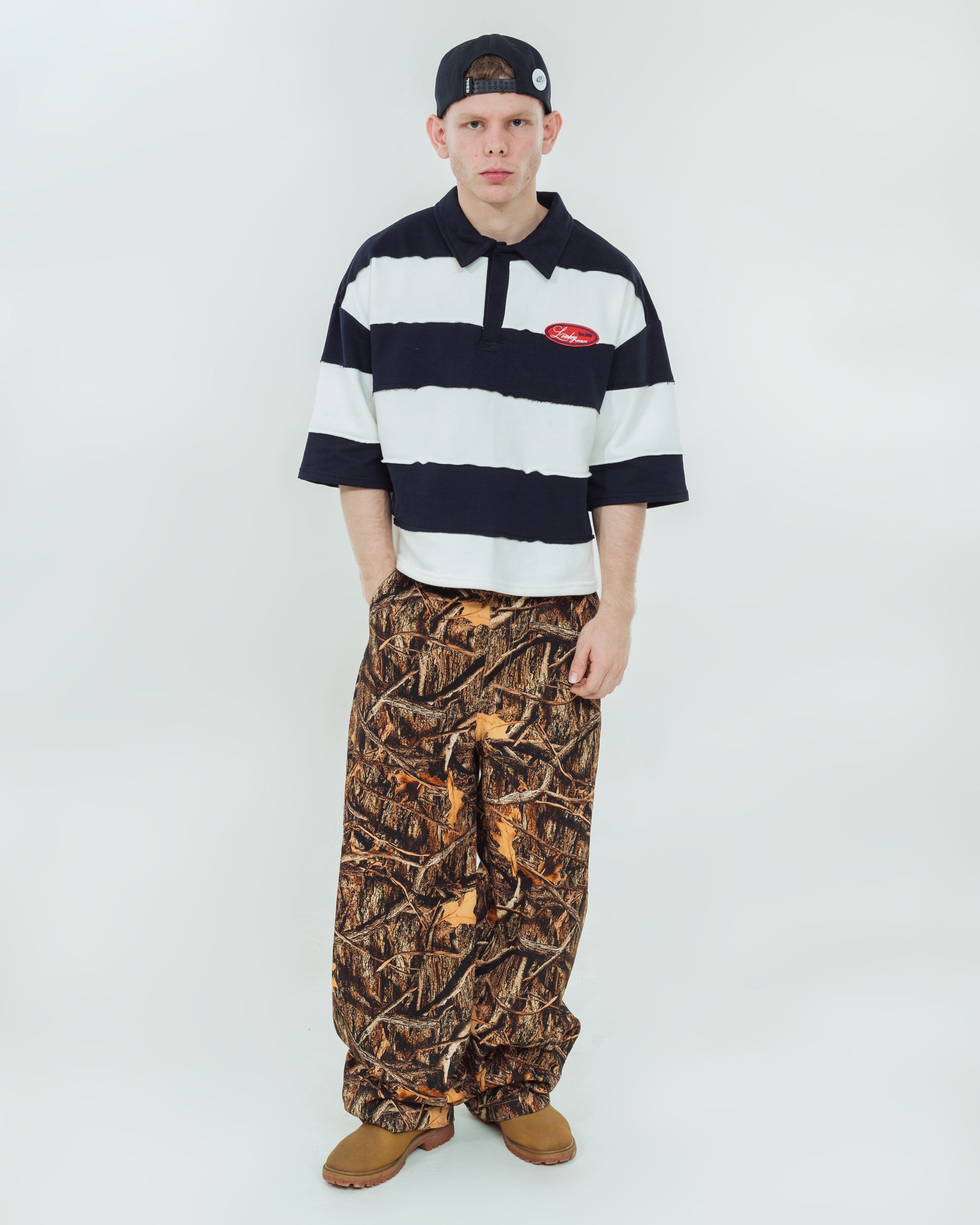 Elaborado en 100% algodón con broches invisibles y parche bordado de nuestra colección Loyalty. El modelo está usando talla M.