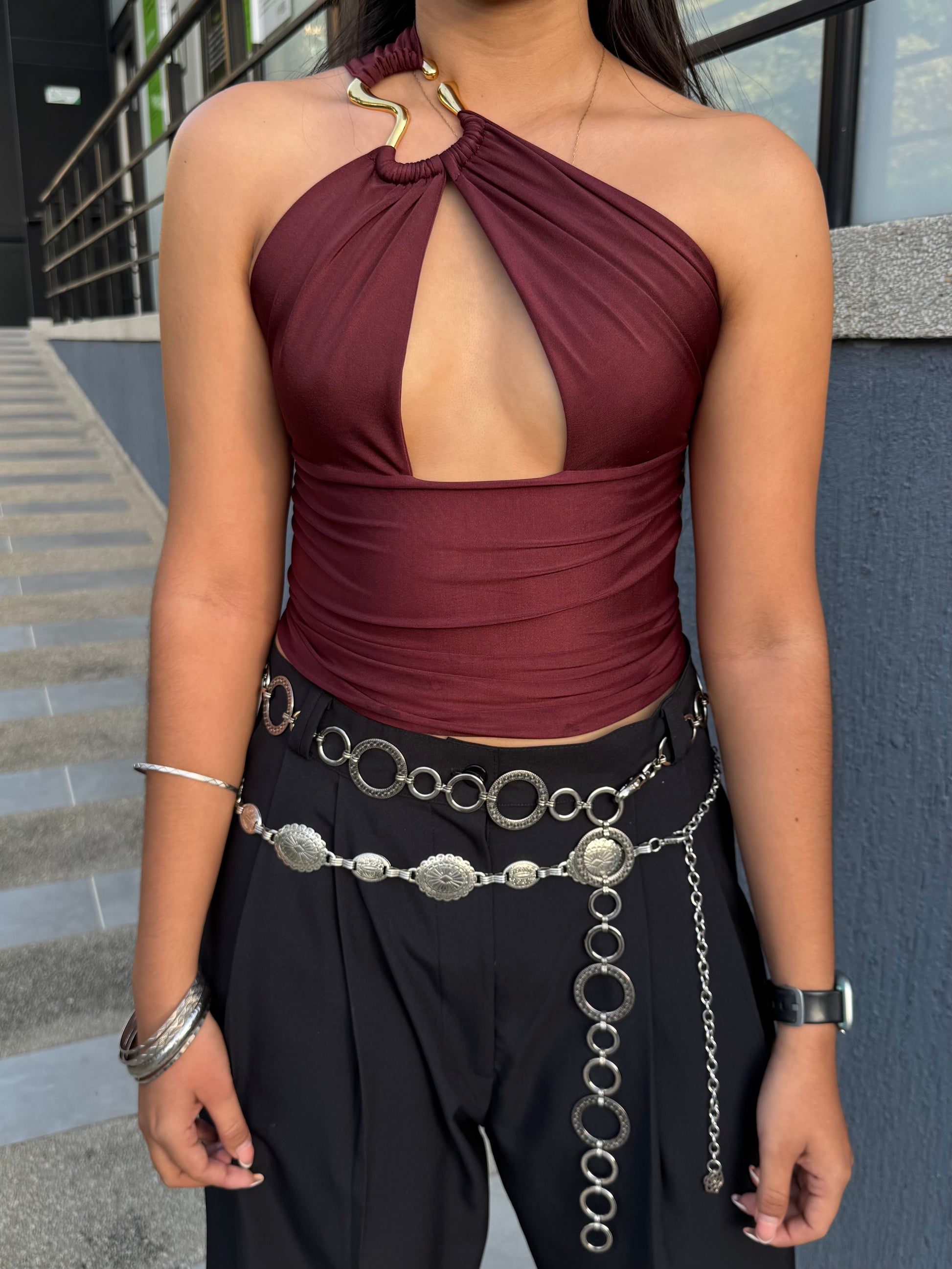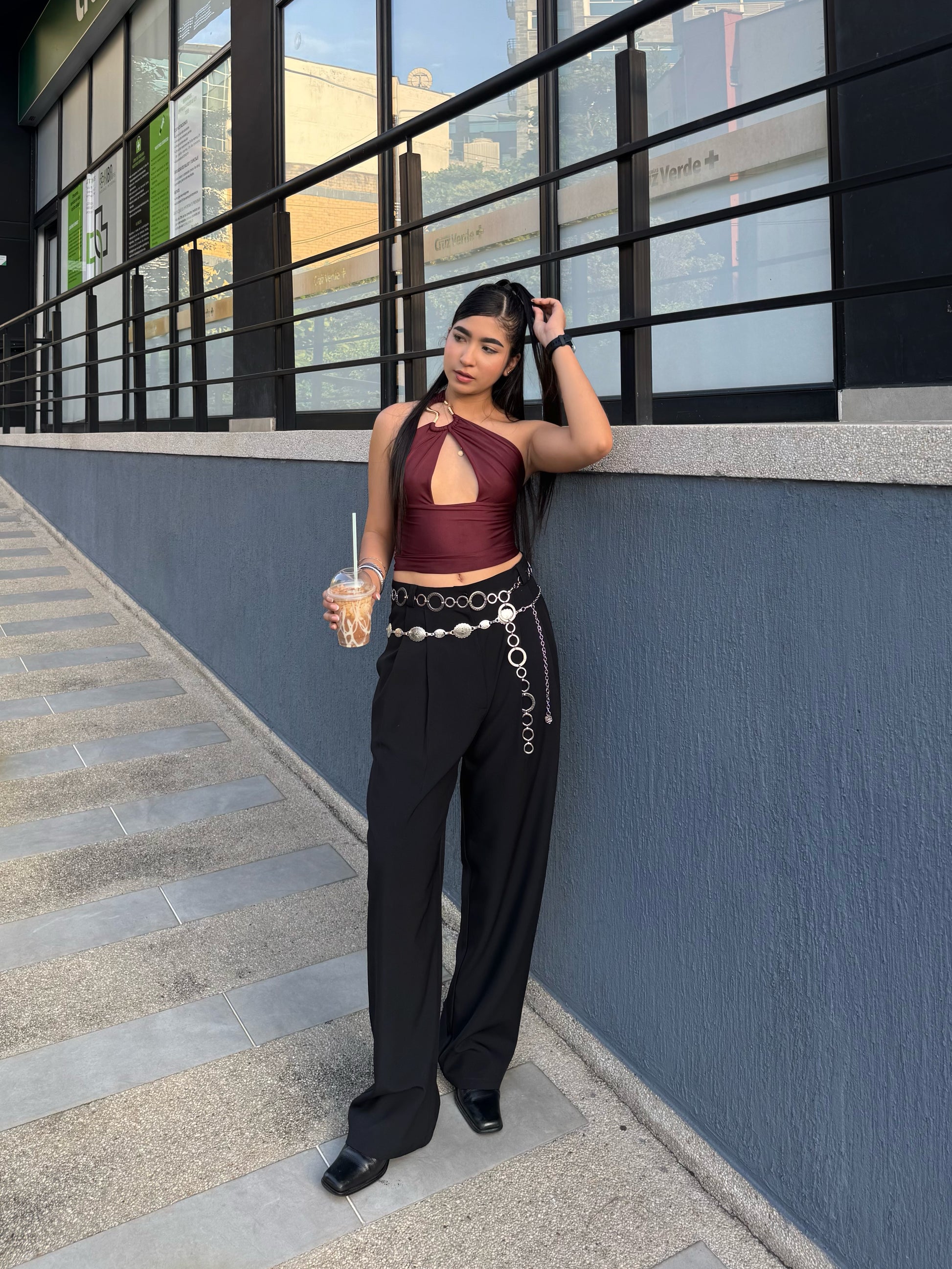 Top elaborado en lycra sublimada y hebilla en acero inoxidable. La tabla de medidas corresponde a nuestras tallas generales de tops, este específicamente es más largo de lo que ella indica