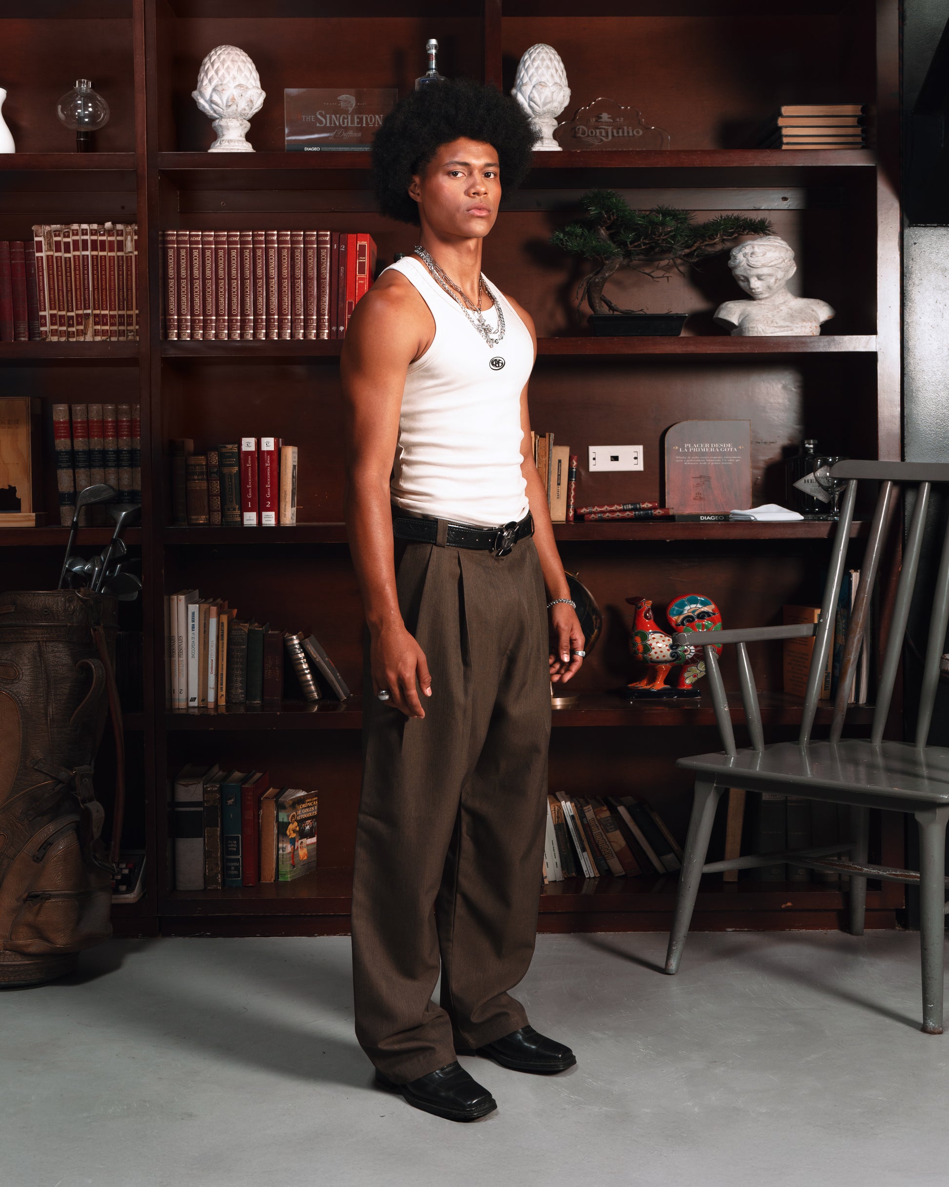 Tank top básico unisex elaborado en rib de 330 gramos 90% algodón 10% poliester con logo en vinilo de alta densidad. El chico está usando talla M y la chica talla S.