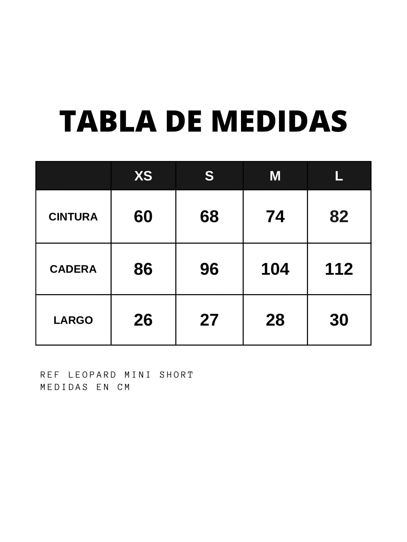 Mini short elaborado en drill licrado sublimado con diseño de print leopardo realista ajustable. La modelo mide 1.75 y está usando talla S.