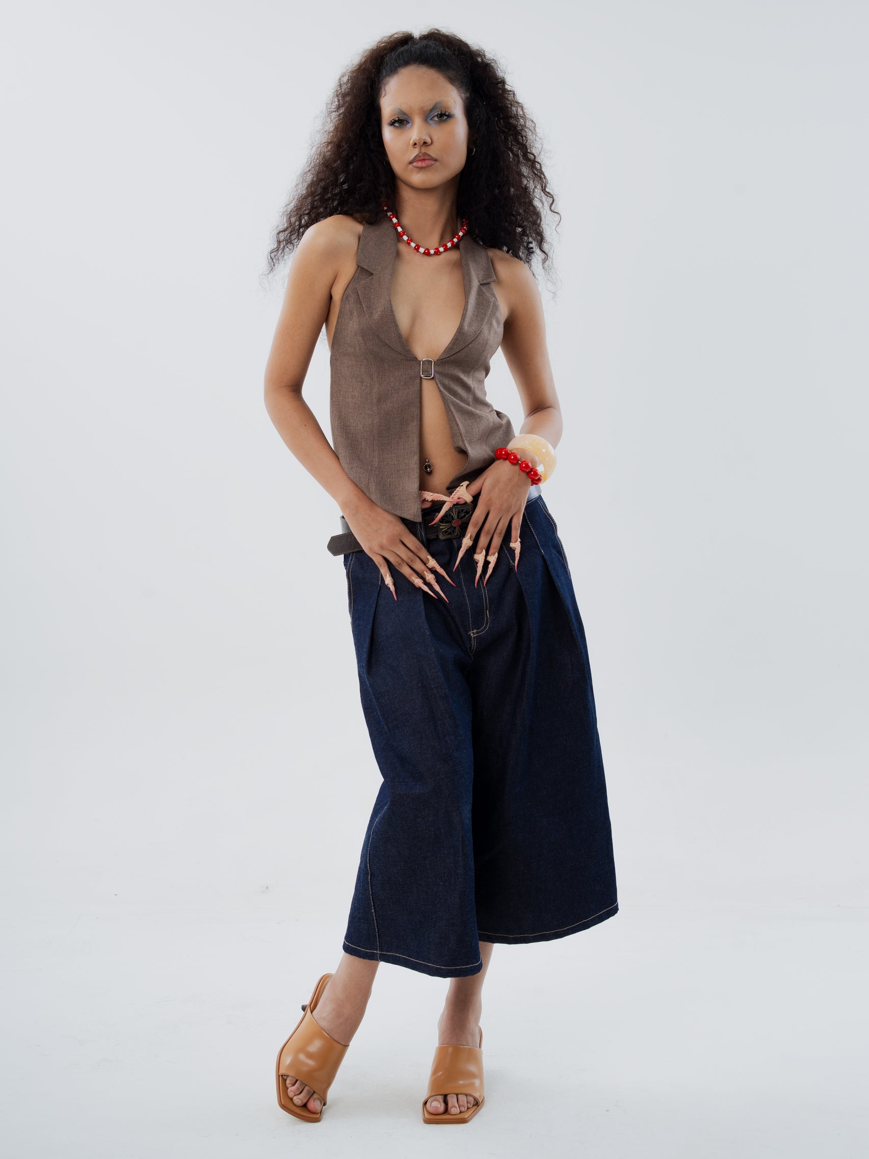 Elaborado en lino pantalonero con hebilla inoxidable ajustable en el posterior.